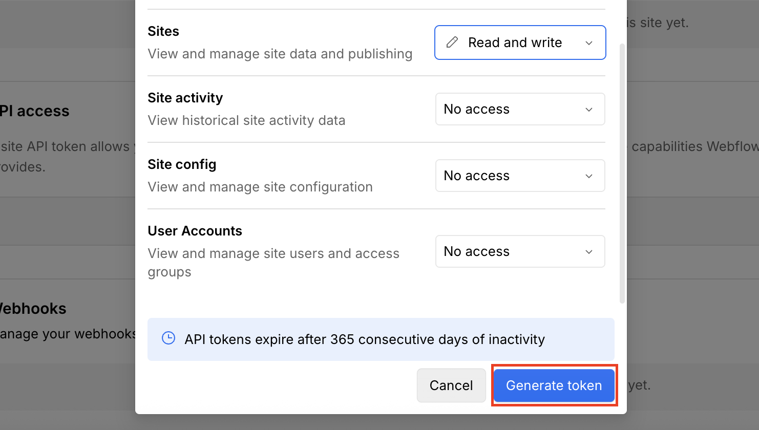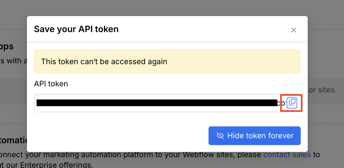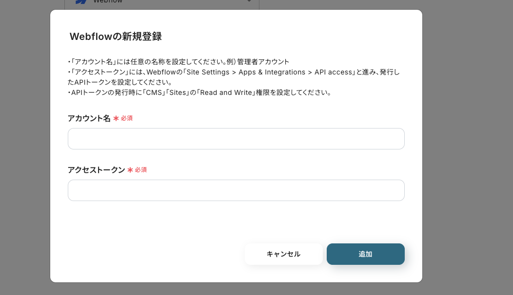 コピーしたら、「アクセストークン」に情報を貼り付けて[追加]をクリック。これでWebflowの登録が完了!