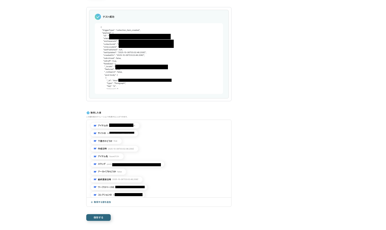 取得した値の確認や追加ができたら「保存する」を押して次へ進みましょう。
