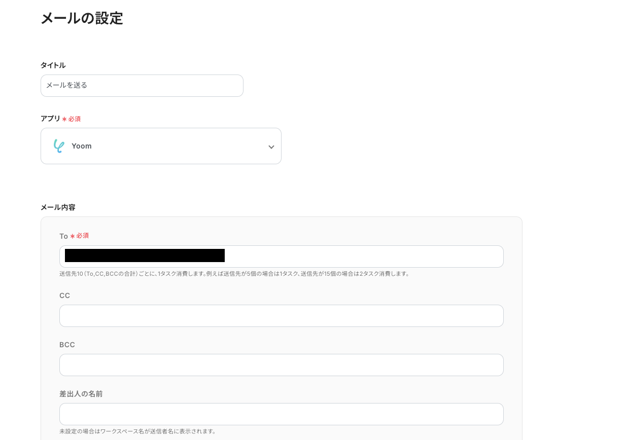 ただし、今回のように有料プランに加入する必要のあるアプリやYoomのチームプラン・サクセスプランでのみ使用可能なアクションをフローボットに組み込む場合には、使いたいアクションに応じた設定を行わなければなりません。