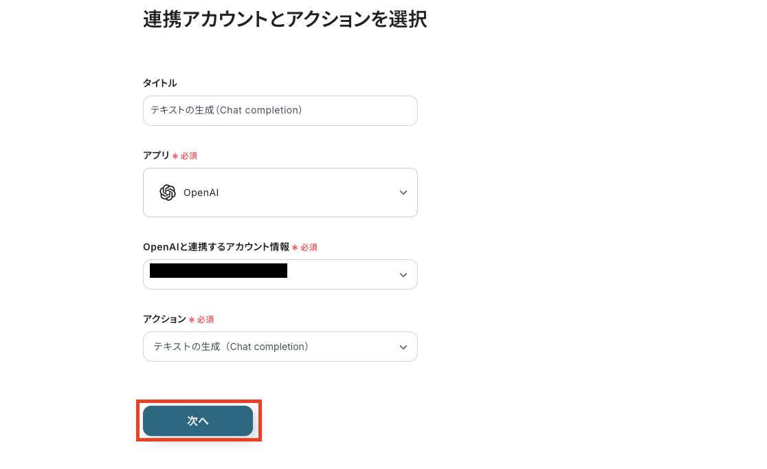 ※ChatGPT(OpenAI)を使ったアクションを動かすには、OpenAIのAPI有料プランに契約しておく必要があります。APIの利用料金が発生した時にスムーズに支払いができるよう、契約内容を整えておきましょう。
