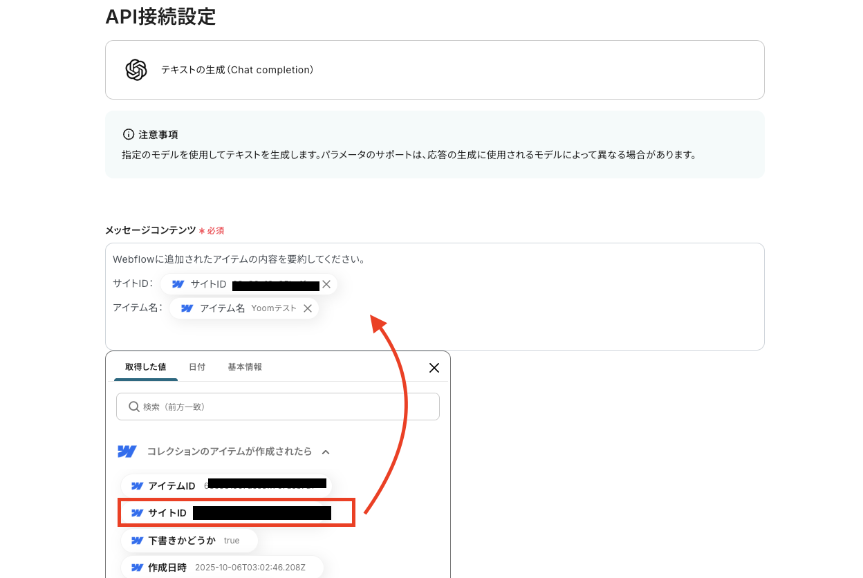 「Webflowに新しいCMSアイテムを追加したら、その内容をOpenAIで要約してチームに共有したい」