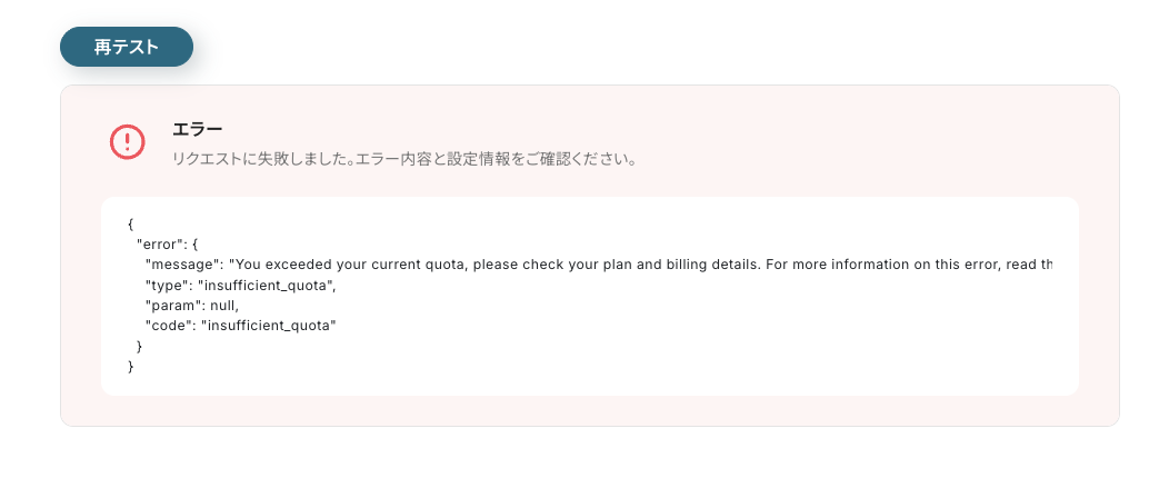 ・ChatGPTのAPI利用はOpenAI社が有料で提供しており、API疎通時のトークンにより従量課金される仕組みとなっています。そのため、API使用時にお支払いが行える状況でない場合エラーが発生しますのでご注意ください。
