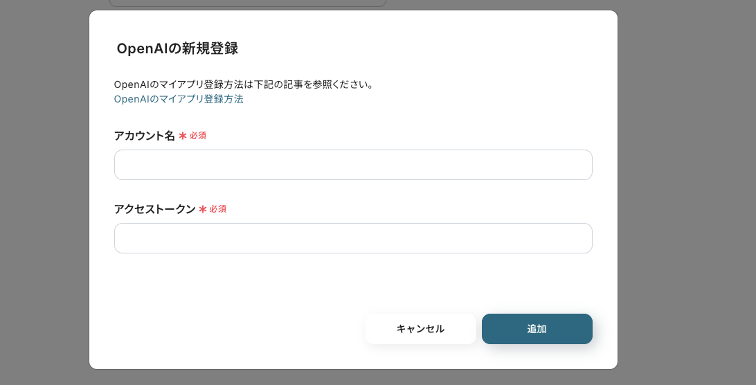 「アクセストークン」に情報を貼り付けて[追加]をクリックしましょう。2つ目のOpenAIの登録も完了です!