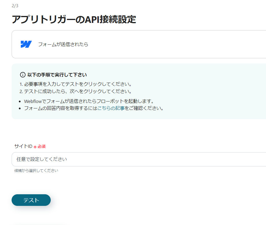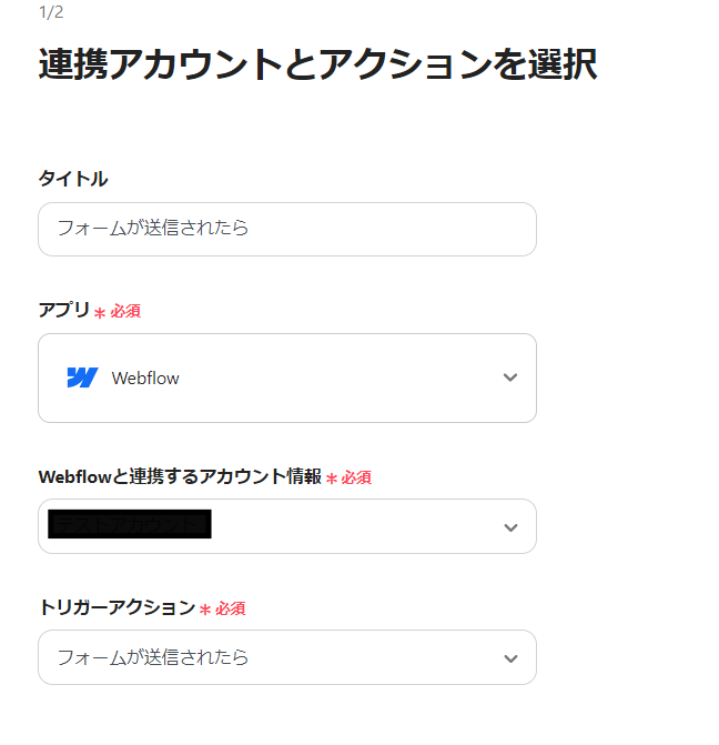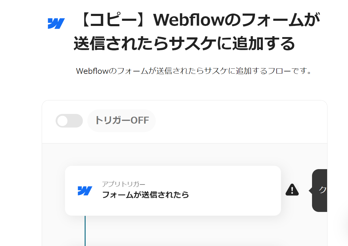今回は、【Webflowのフォームが送信されたらサスケに追加する】というフローを作成します。