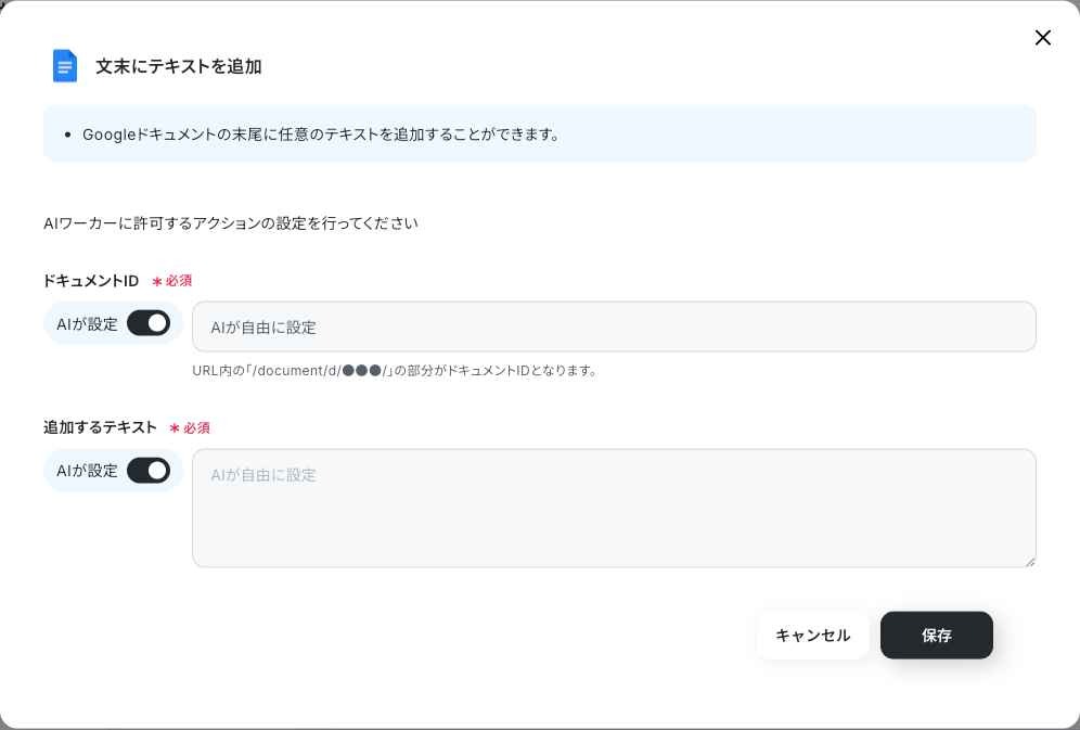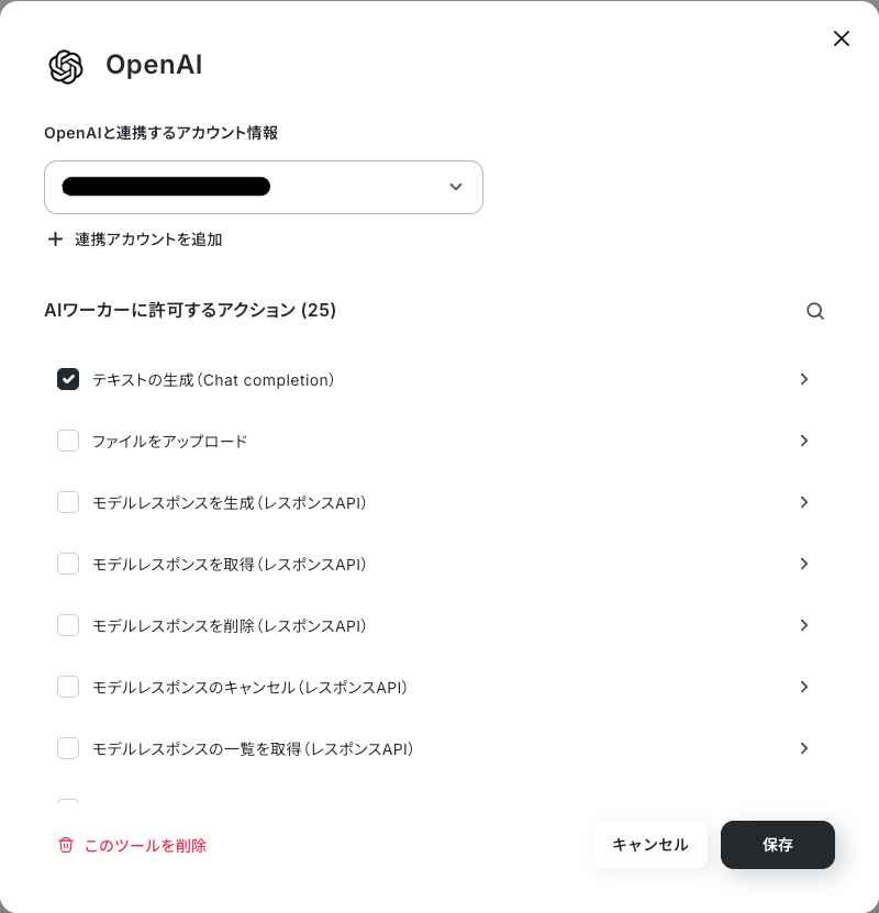 AIワーカーに許可するアクションには、2つの項目を指定しました。