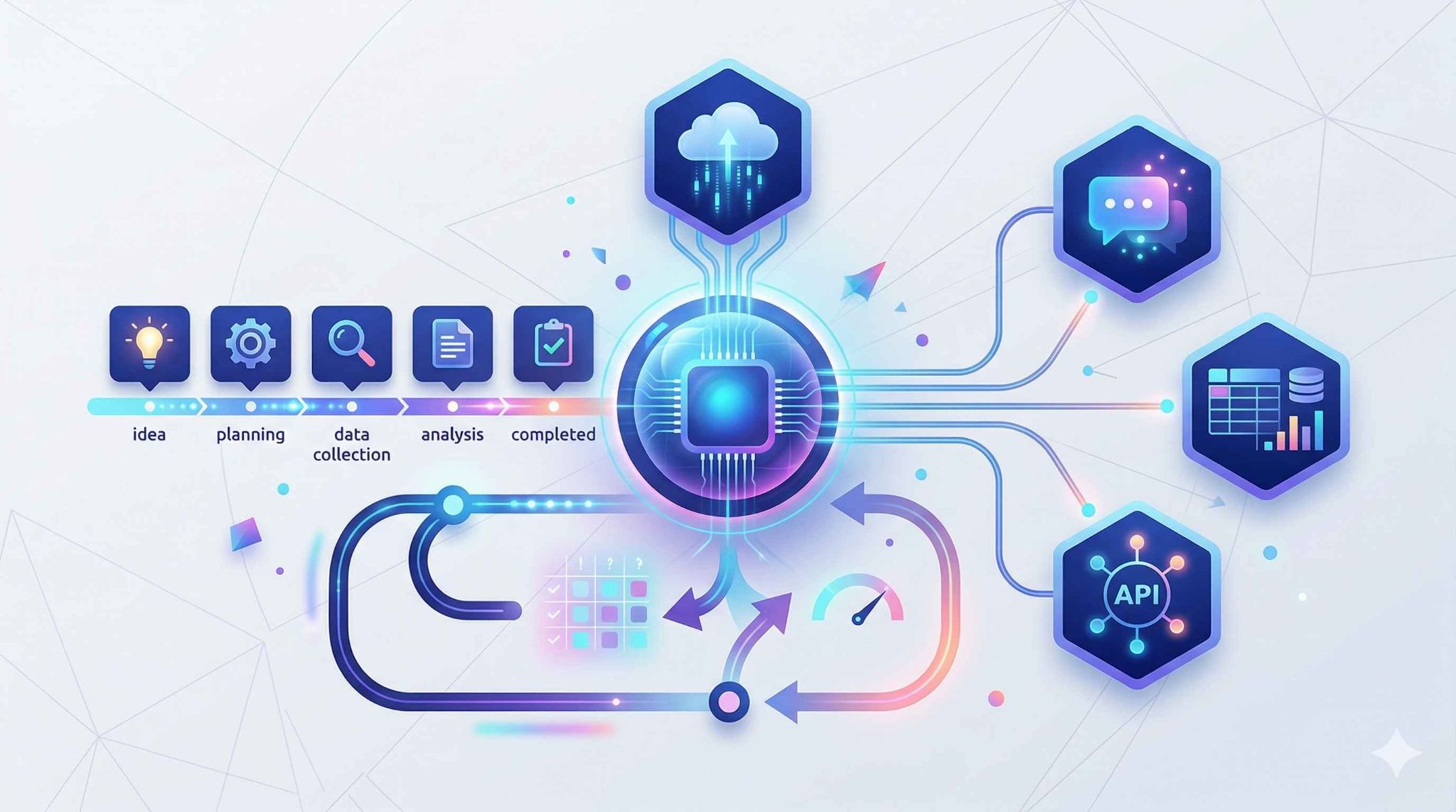 AIエージェントの仕組みは、大きく「目的の理解」「計画の策定」「実行」「評価と修正」というプロセスで成り立っています。