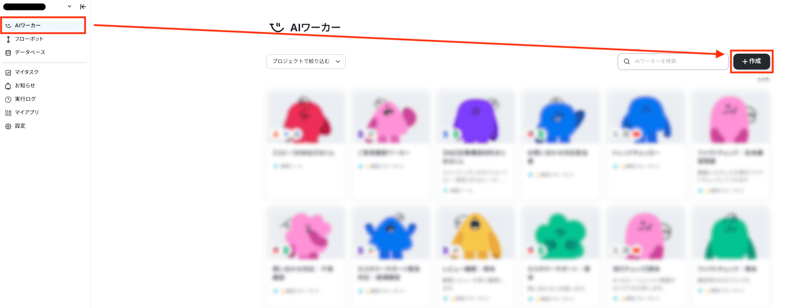 まずは、YoomのダッシュボードからAIワーカーの新規作成画面を開きます。