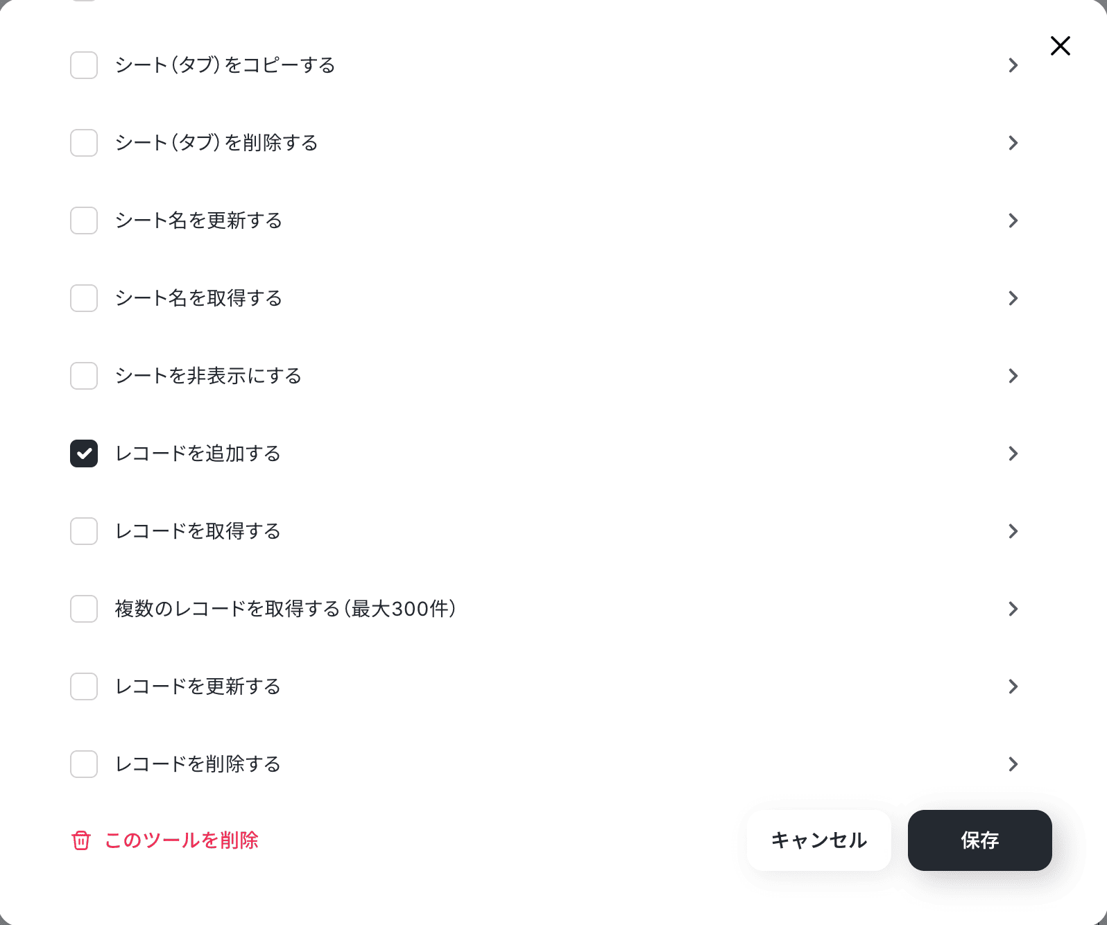 「+ツールを追加」から、Google スプレッドシートを検索して追加しましょう。