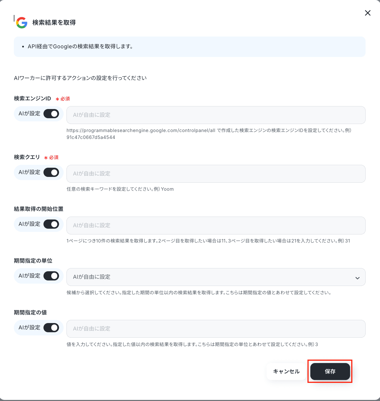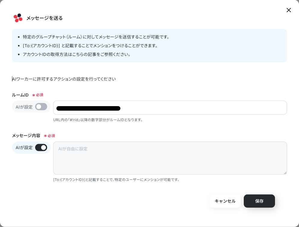 この記事ではAIワーカーに任せる設定で保存しています。