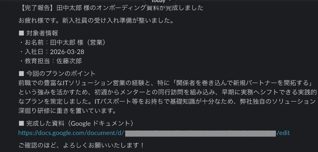 【完了報告】{{氏名}} 様のオンボーディング資料が完成しました