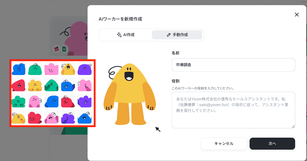 まずはYoomの管理画面から、新しいAIワーカーを作成しましょう。
