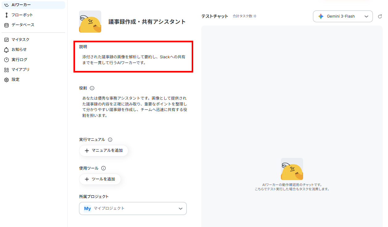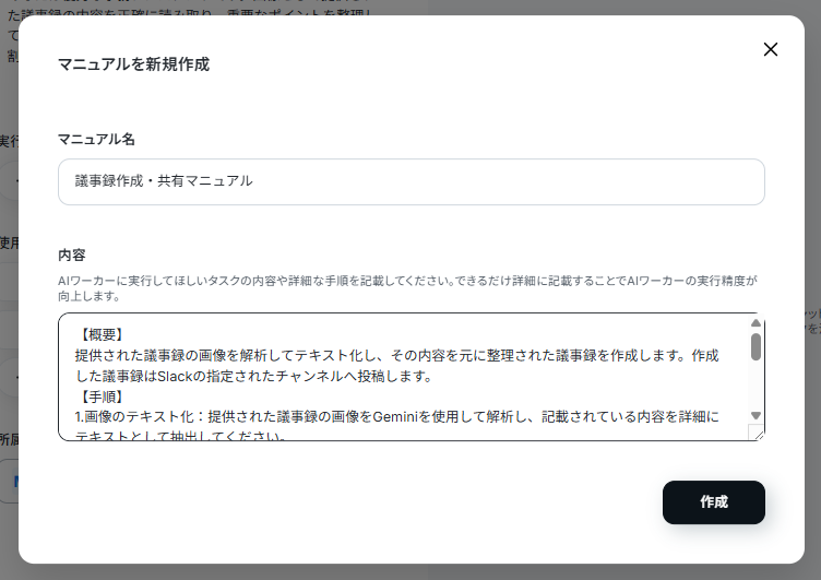 以上でAIワーカーの設定は完了です。マニュアルの作成については、以下のヘルプページも参考にしてみてください。
