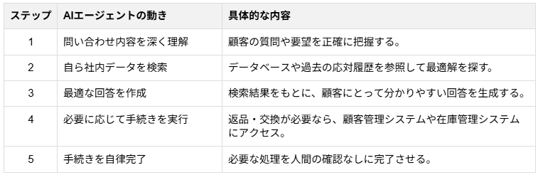 カスタマーサポート部門は、自律型AIエージェントの導入効果が特に現れやすい領域です。従来のチャットボットは、あらかじめ設定されたFAQに基づいて回答を返すことしかできず、複雑な問い合わせには結局オペレーターが対応する必要がありました。