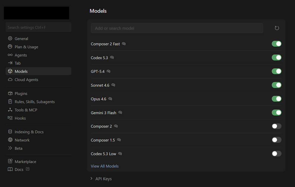 Cursorには「Gemini 3 Flash」や「GPT-5.4」といった精度の高いモデルが搭載されています。