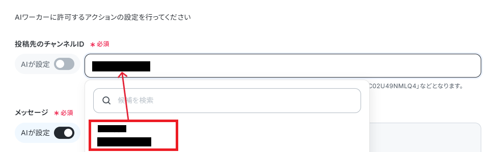 以下のように、AIワーカーに任せる部分と人の手で指定する部分の設定ができます。