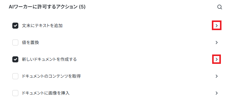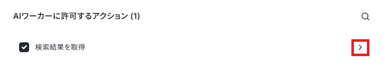 AIワーカーに許可するアクションは、「検索結果を取得」を選択して右の矢印をクリックします。