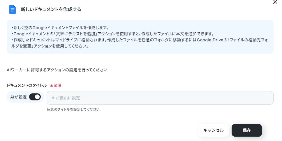 今回はすべてAIワーカーに任せる設定でそのまま保存しました。