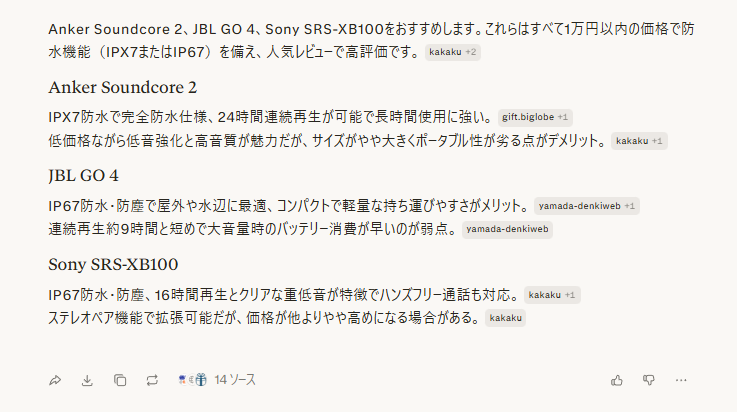 約5秒のブラウジングで、Comet AIは家電量販店や価格比較サイト、専門誌のレビューを分析し、最適な3候補を提示しました。特筆すべきは、 その情報の「解像度」です。