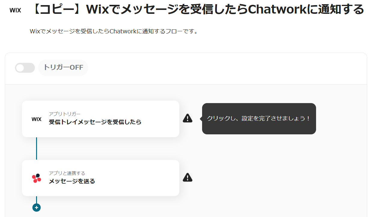 今回は「Wixでメッセージを受信したらChatworkに通知する」という以下のテンプレートの設定方法をご紹介します。