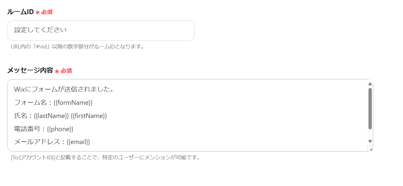 ですが、WixからChatworkへの自動通知により、手動での情報転記作業が不要になります。