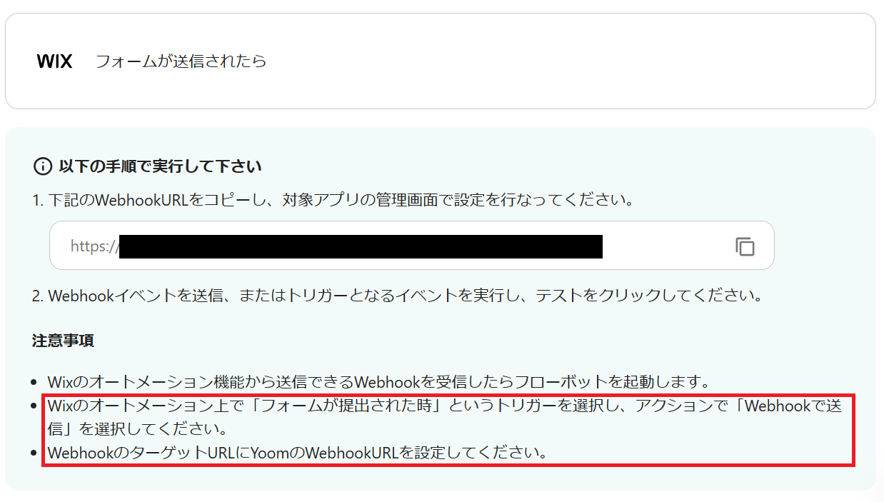 - トリガー: Wixの「フォームが送信されたら」を設定する。