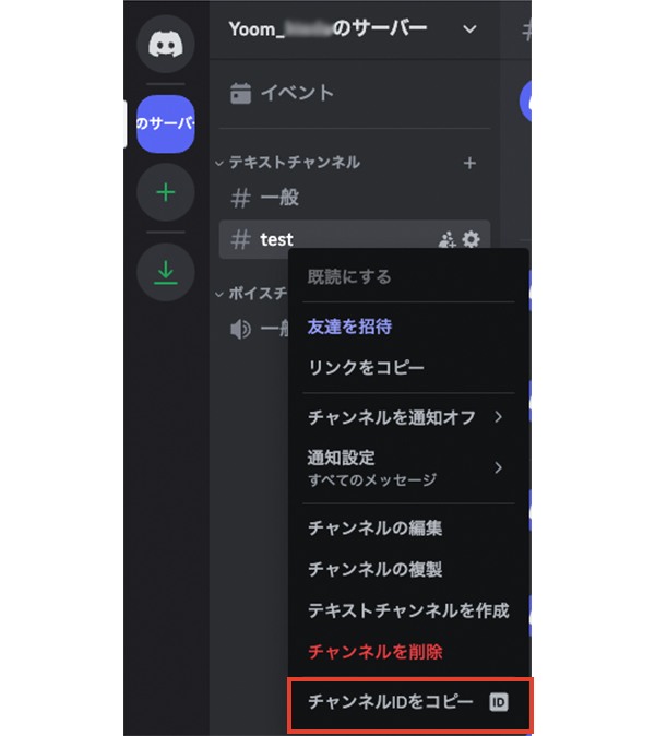 - Discordサーバー内で、IDを取得したいチャンネルを右クリックします。「IDをコピー」を選択します。