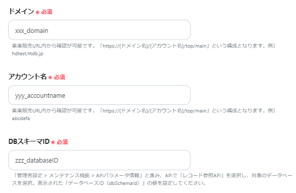 次のページでは、API接続と登録するレコードの値を設定します。