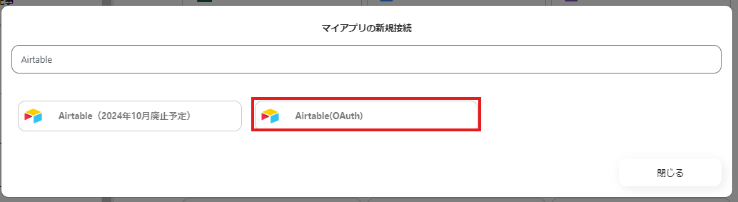 ※Airtableは2つ表示されますが、「Airtable(OAuth)」の方をご登録ください。