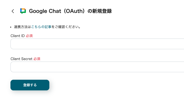 各値を入力し、登録するボタンをクリックするとGoogle Chatのマイアプリ登録が完了です。