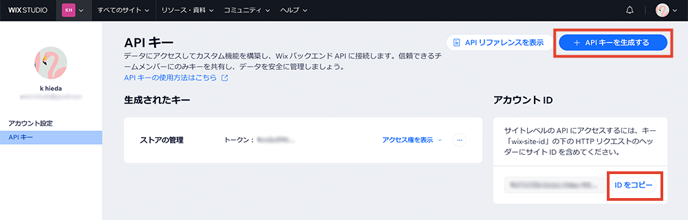 検索結果からWixを選択します。事前準備で取得した値を入力する画面が表示されます。