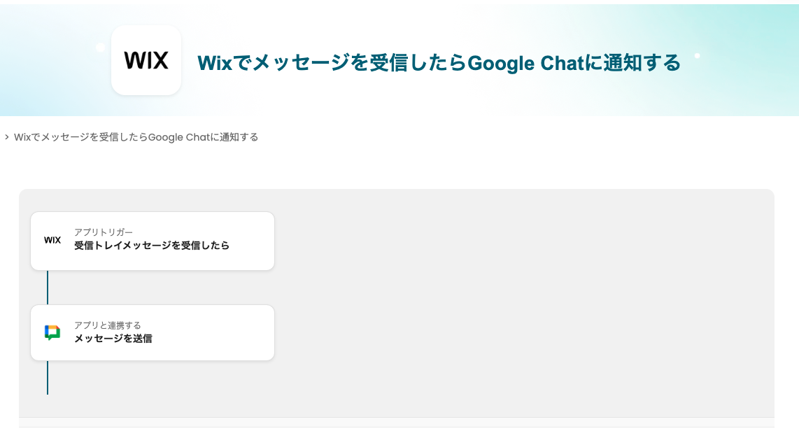 今回のフローボットは、Wixで受け取ったメッセージをGoogle Chatに即時通知する自動化を実現します。この通知により、メッセージの見逃しを防ぎ顧客からの問い合わせ対応に素早く反応できる体制が整います。
