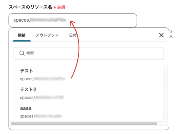 →テストをクリック →成功 アウトプットからメッセージの項目が取得できます。