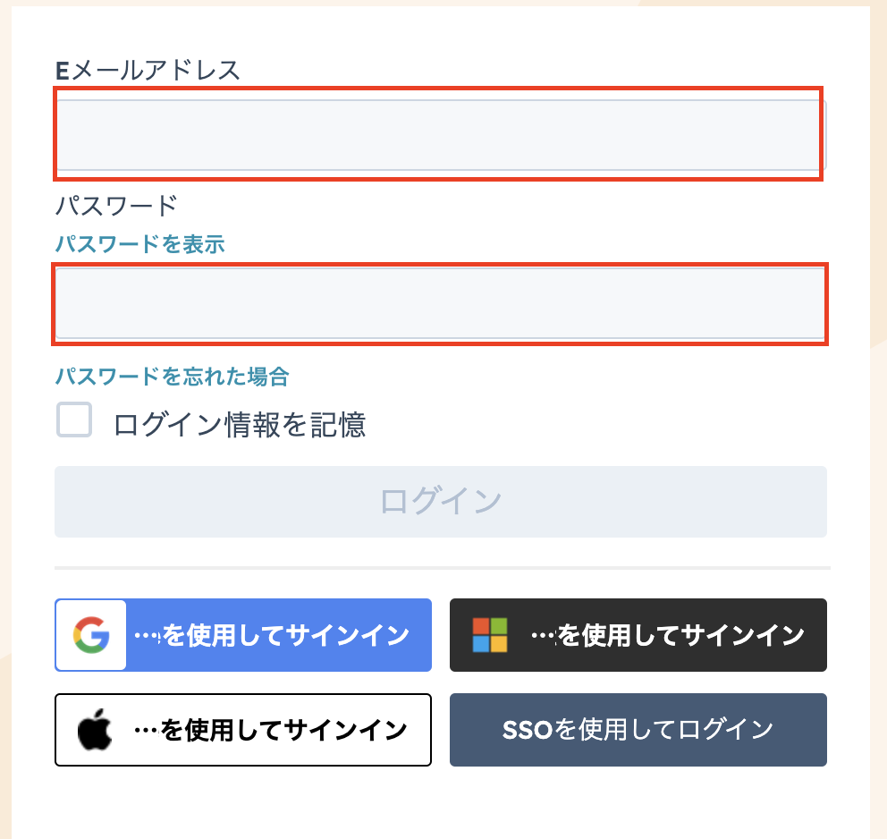 Eメールアドレスとパスワードを入力し、ログインをクリックしましょう。
