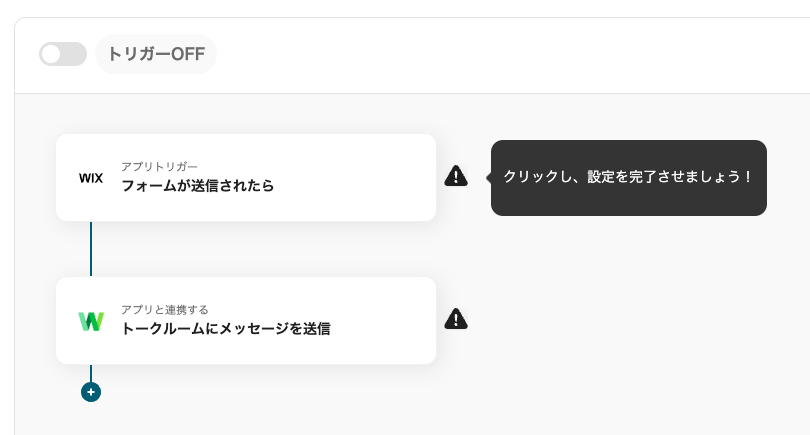 テンプレートの1つ目のプロセスをクリック!ここではWixから抽出する情報を取得する設定を行います。