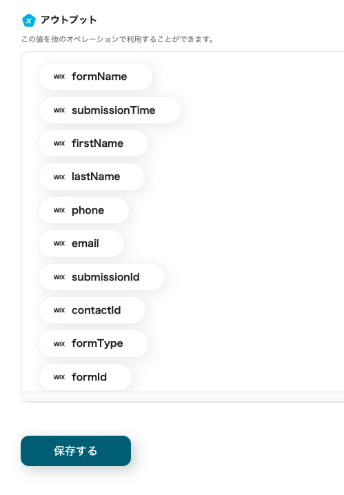 各必須項目を入力し、追加ボタンをクリックします。これでWixとの連携ができました。
