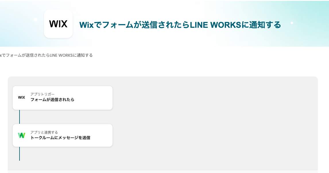 ここから「Wixでフォームが送信されたらLINE WORKSに通知する」自動化を、Yoomのテンプレートを使った作り方を解説します。
