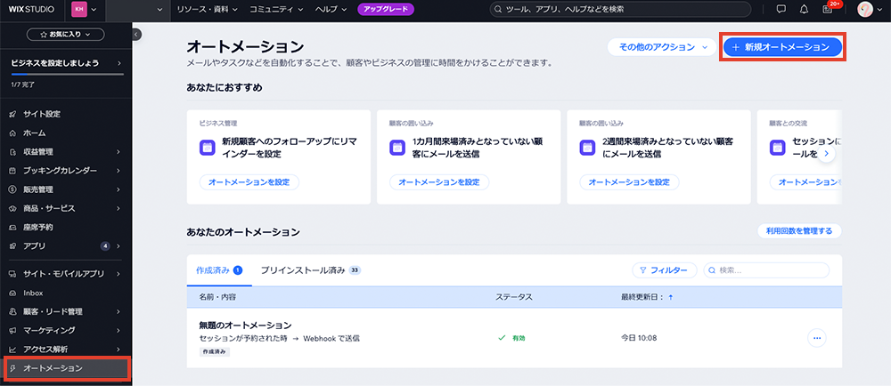 Wixのダッシュボードにログインします。
