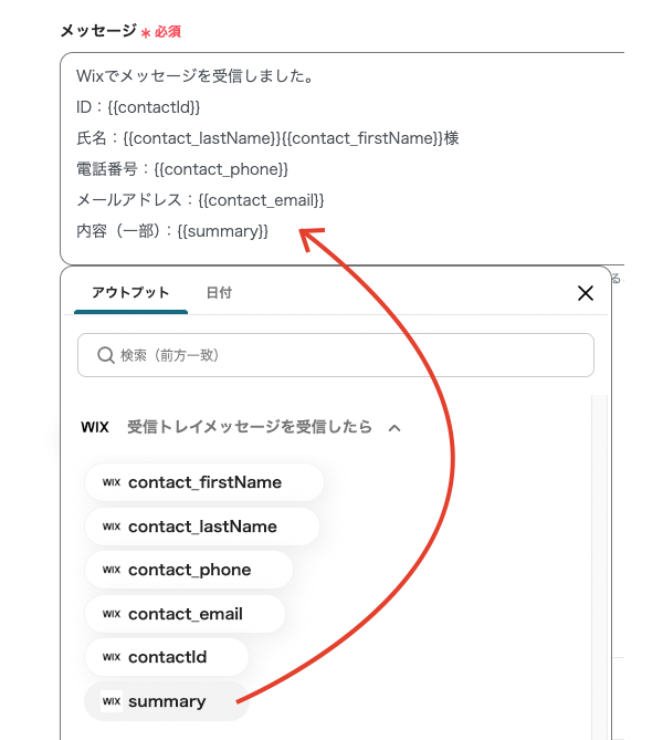 ・WixのアウトプットはJSONPathから取得可能です。取得方法は下記をご参照ください。