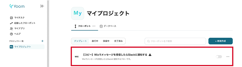 ステップ2 Yoomのフローボットテンプレートをマイプロジェクトへコピーする