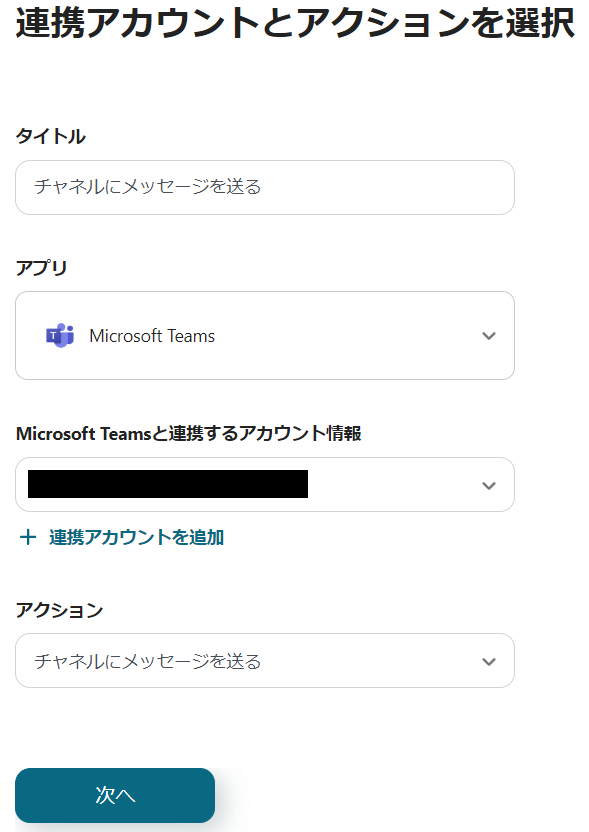 続いてMicrosoft Teamsの設定を行うため、「チャネルにメッセージを送る」をクリックしましょう。