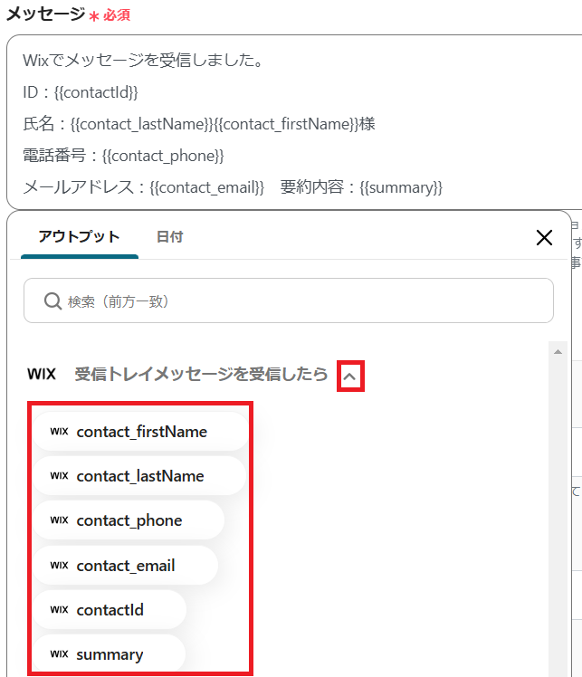 Wixのアウトプットを使用して設定を行います。