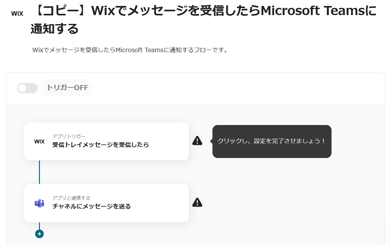 今回は「Wixでメッセージを受信したらMicrosoft Teamsに通知する」という以下のテンプレートの設定方法をご紹介します。
