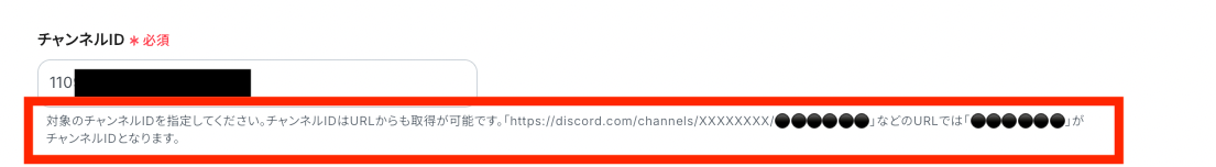 赤枠の注記を確認しながら、DiscordのチャンネルURLから設定してください。