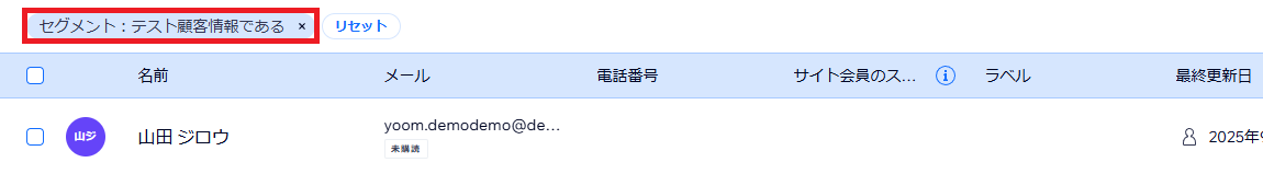 設定が完了したら、実際に連絡先をセグメントに追加してみましょう。