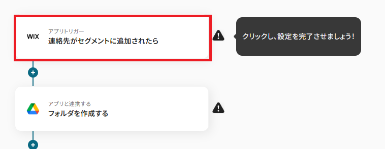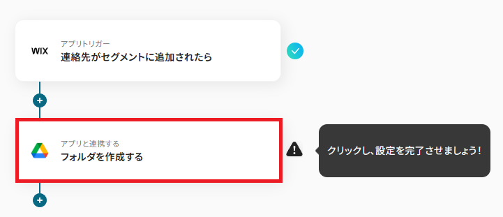 このワークフローを活用すれば、Wixで連絡先が特定のセグメントに追加されたタイミングをトリガーにして、Google Driveに自動でフォルダを作成できます。