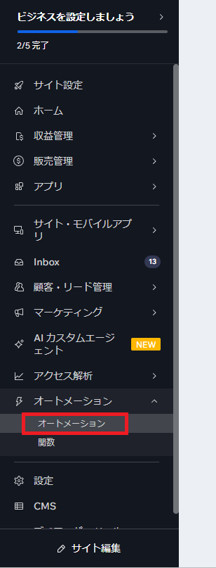 次に、Wixの管理画面に移動しメニューから「オートメーション」を選択します。