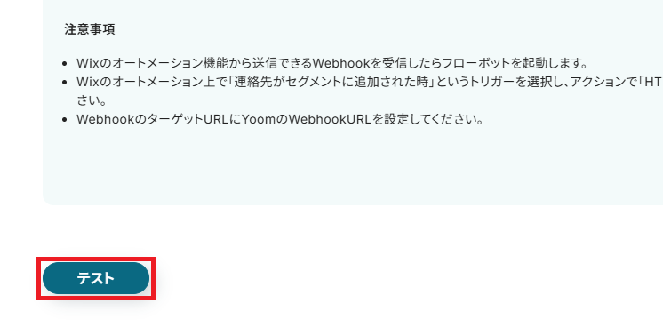 追加できたら連携テストを行います。Yoomに戻りテストボタンをクリックしましょう。
