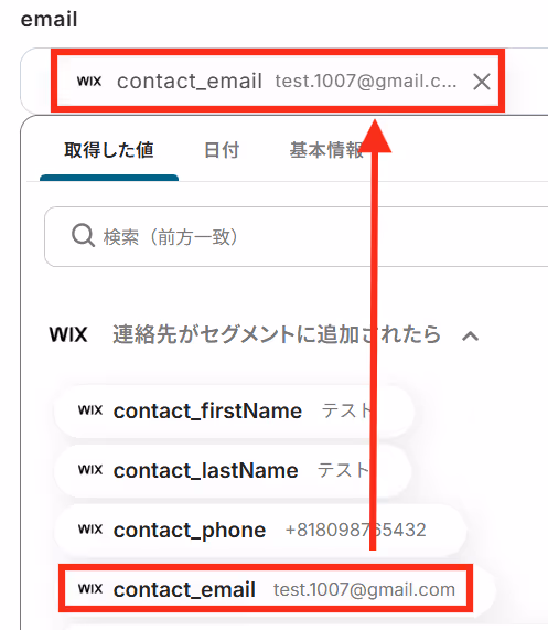 このように取得した値を活用することで、固定値ではなく、トリガーが実行されるたびに最新のWixの情報が反映されます。
