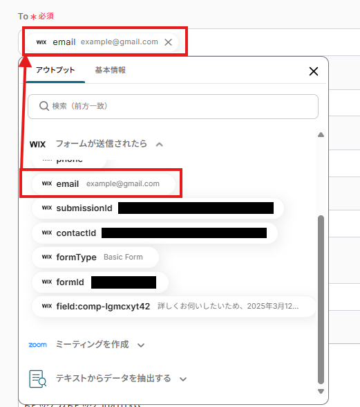 2.メール内容の「To」は、入力欄をクリックして表示されるアウトプットから選択してください。