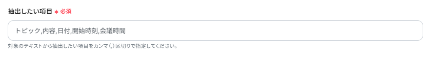 「抽出したい項目」は、テキストから抽出したい項目を入力してください。